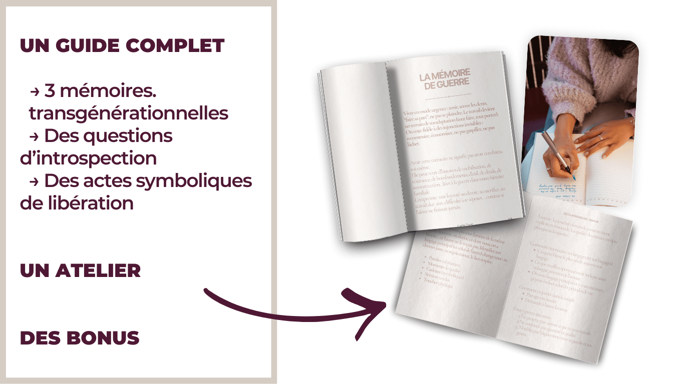 Un guide pensé pour t’aider à comprendre les mémoires qui te bloquent et à t’en libérer, auquel tu peux accéder dès aujourd’hui pour 17€.